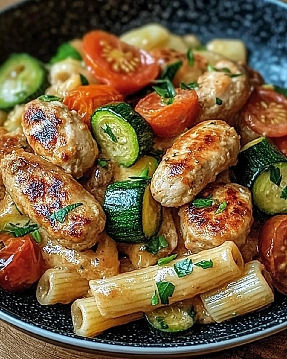 Chicken Sausages with Zucchini, Tomatoes, and Pasta